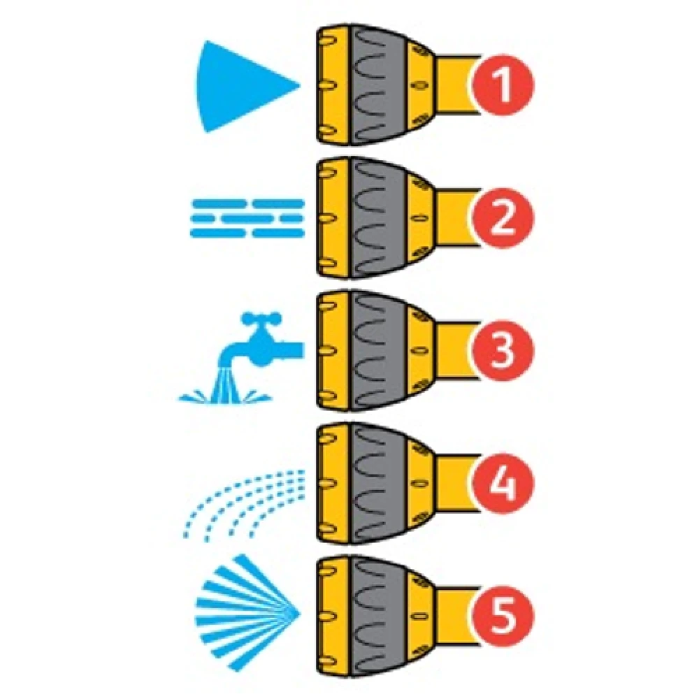 | Spray Patterns | Cone, Fan, Fast Fill, Fine Rose, Jet |