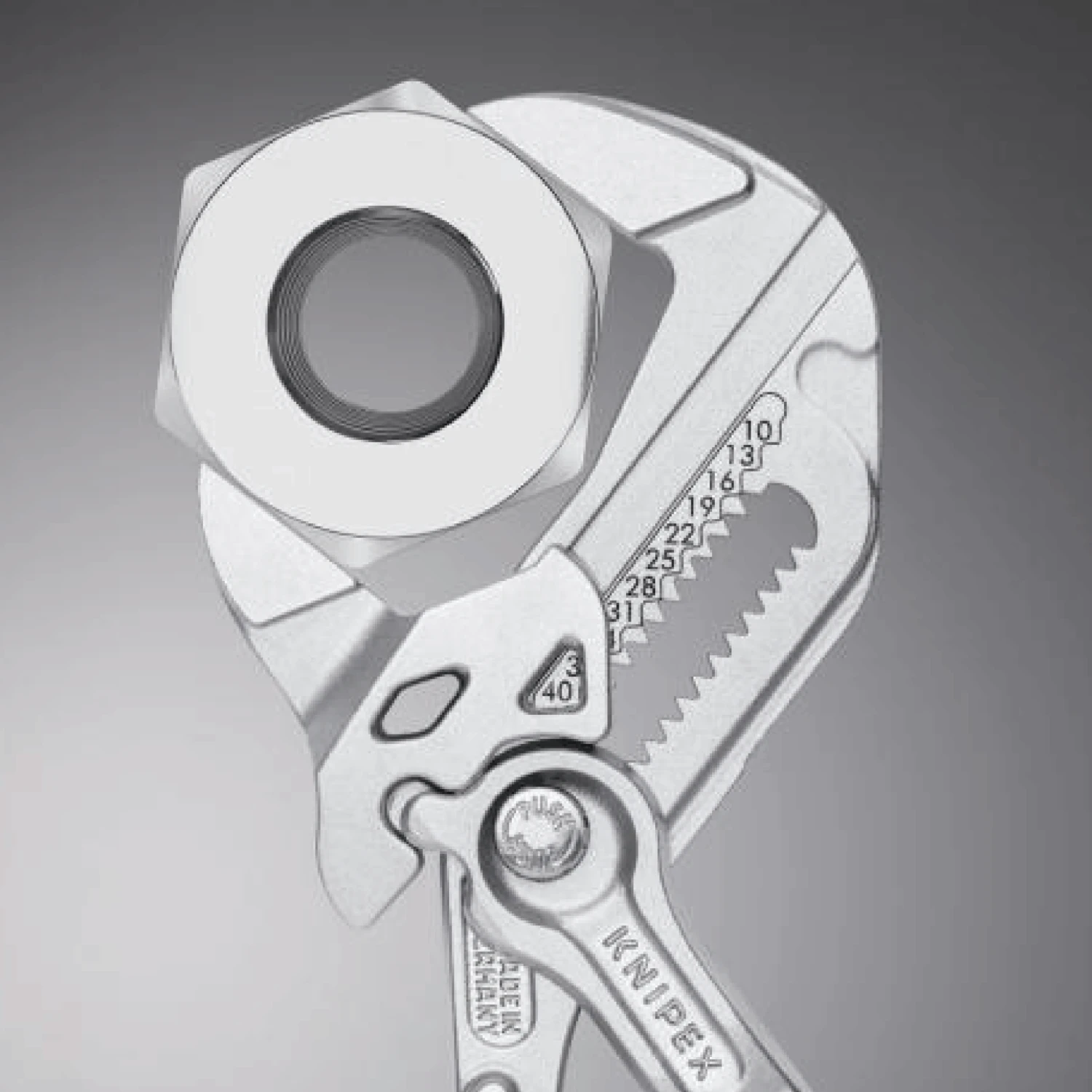 - Smooth jaws for damage free installation of plated fittings – working directly on chrome