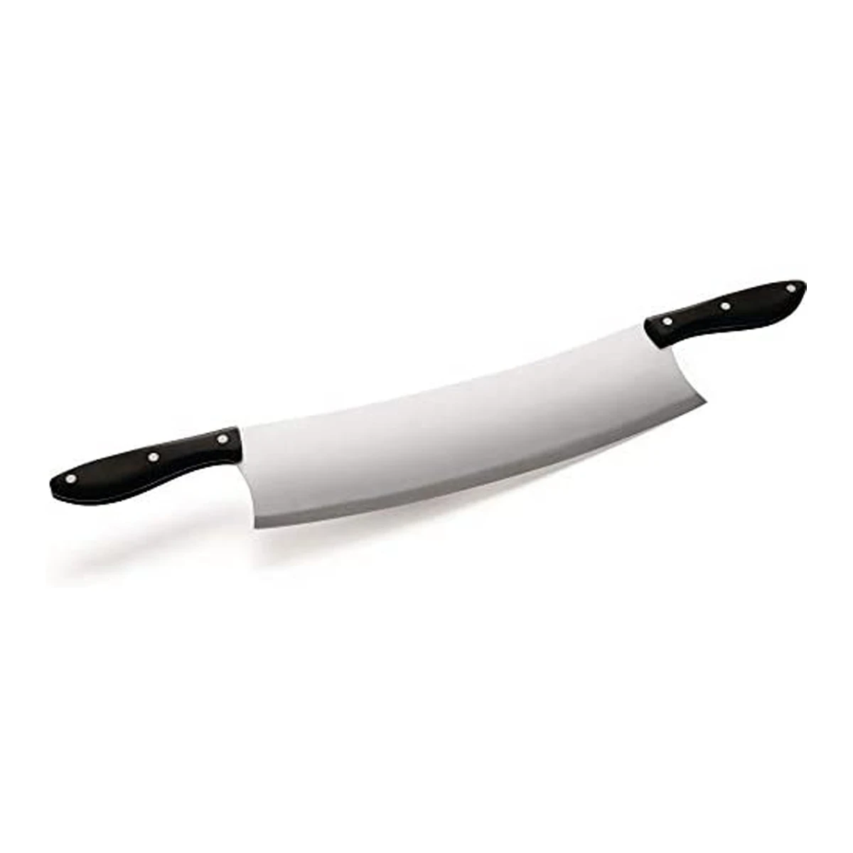 - You can also use this half-moon-shaped blade to effortlessly chop fresh herbs, meat, flatbreads, cheeses, and other foods as well. Holding the wooden handle, rock the mezzaluna-style stainless steel blade back and forth on a pizza fresh off the grill until the crust is cut cleanly through. Rotate and repeat until your pizza is sliced to perfection.